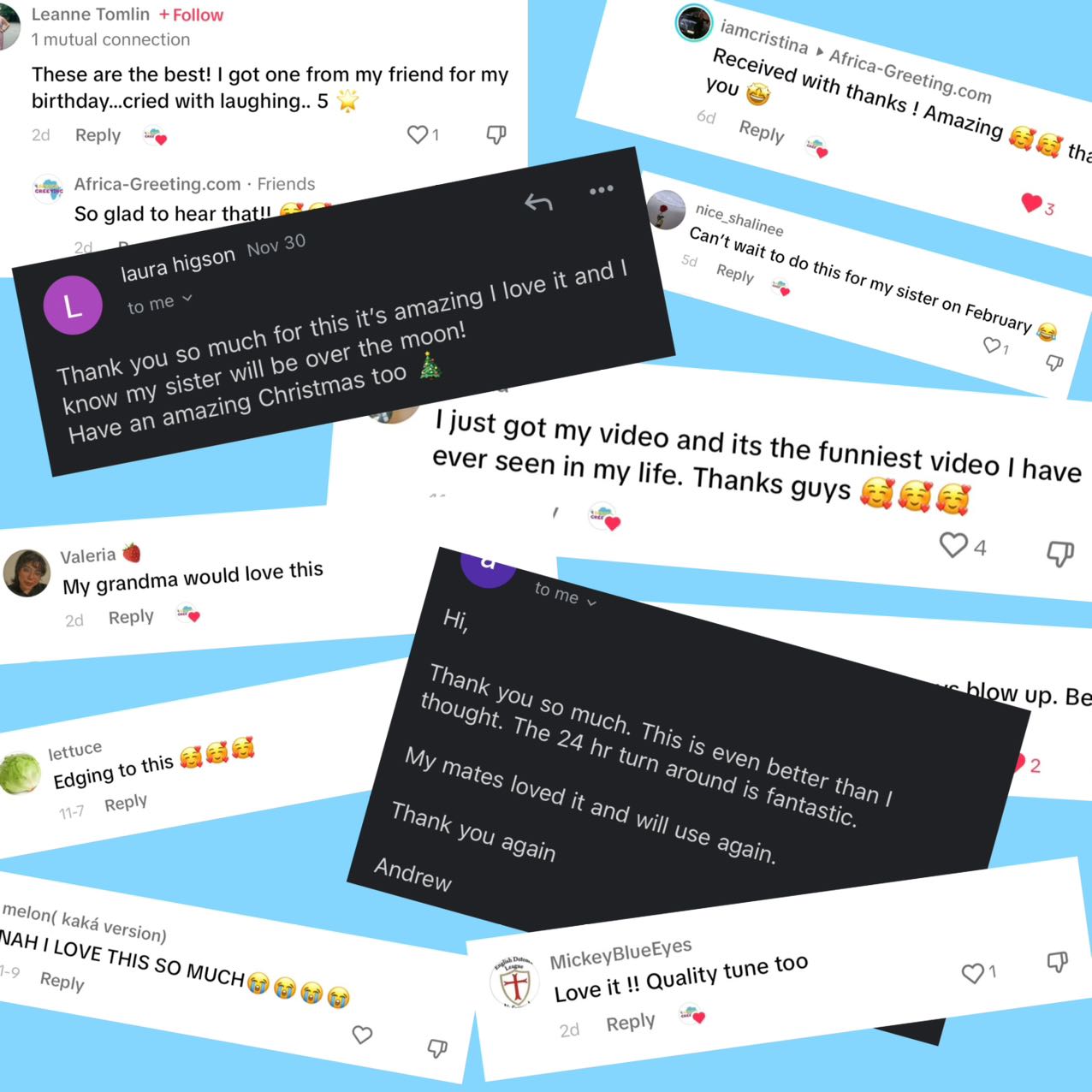 Discover the joy shared by Africa-Greeting's satisfied customers with their heartfelt greeting videos.